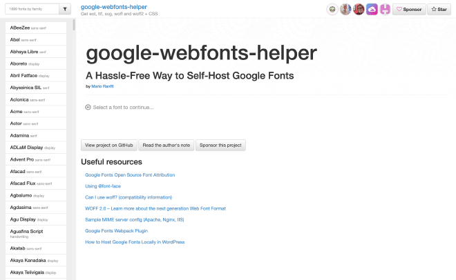 A tool for previewing and downloading Google Fonts made especially useful as Google doesn’t allow you to download woff font files.